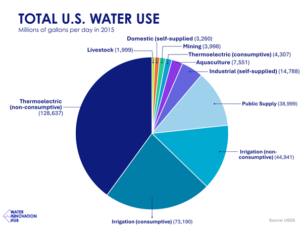 Energy, agriculture, and livestock dominate total demand. The country consumes roughly 322 billion gallons of freshwater every day. At the household level, the average American lifestyle accounts for about 420 gallons per person per day.